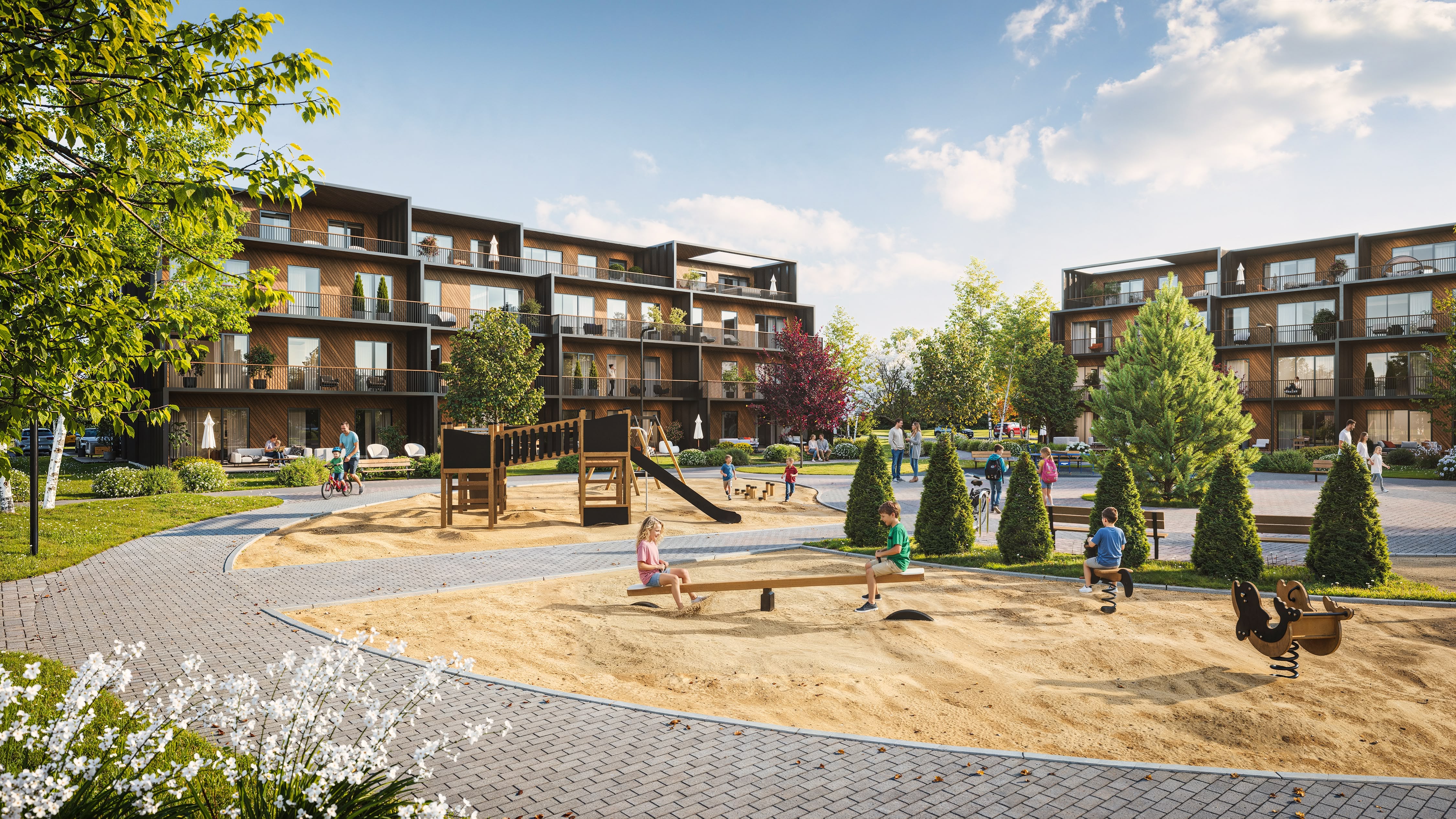 Uus linnak on roheline, avar, puhas ja täisfunktsionaalne. Jala jõuab 5–10 minutiga igale poole – lasteaeda, kooli, poodi, trenni. Südalinngi pole kaugel, umbes 15 minutit autosõitu.