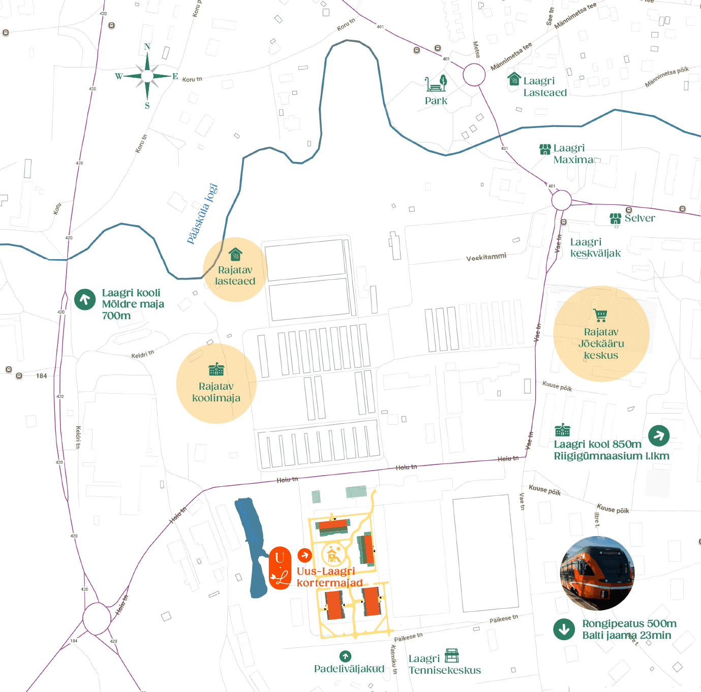 Uus-Laagri arenduse asukoht tagab mugavad ja kiired ühendused nii Tallinna südalinna kui ka teiste piirkondadega: