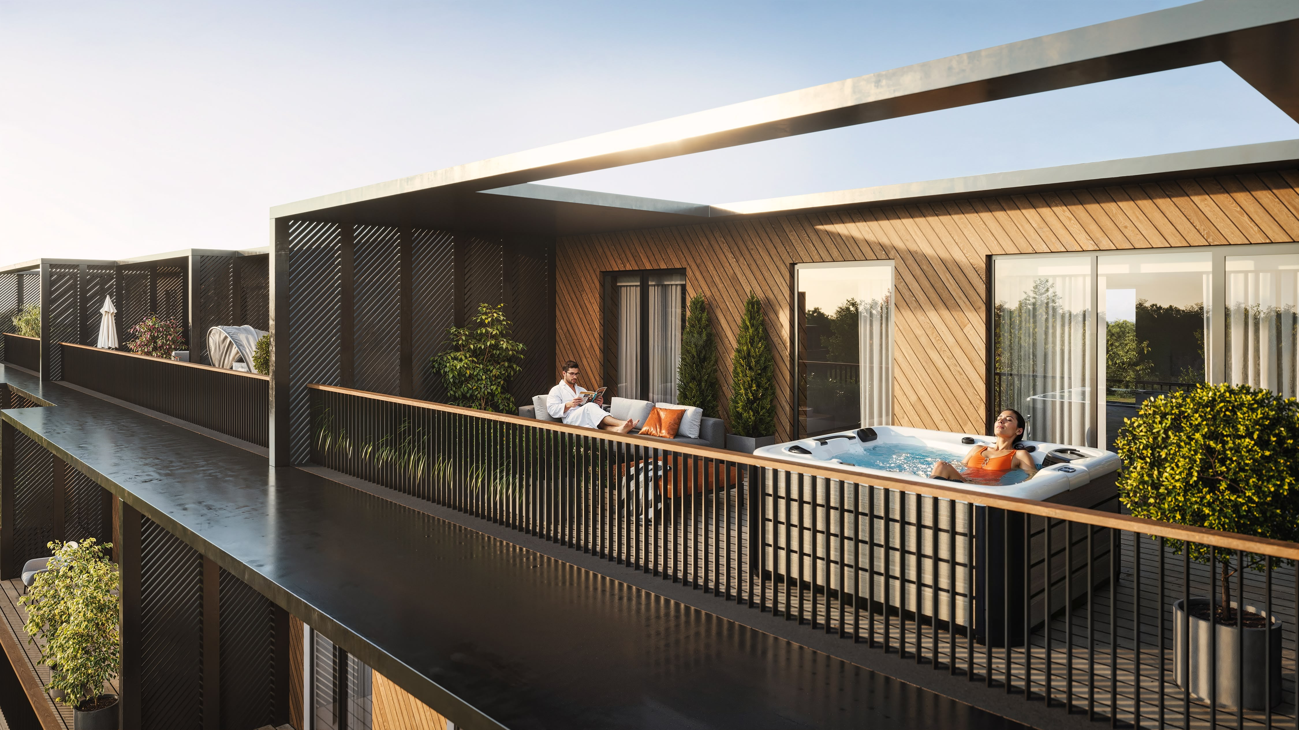 modernsetes puitlaudisega terrassimajades